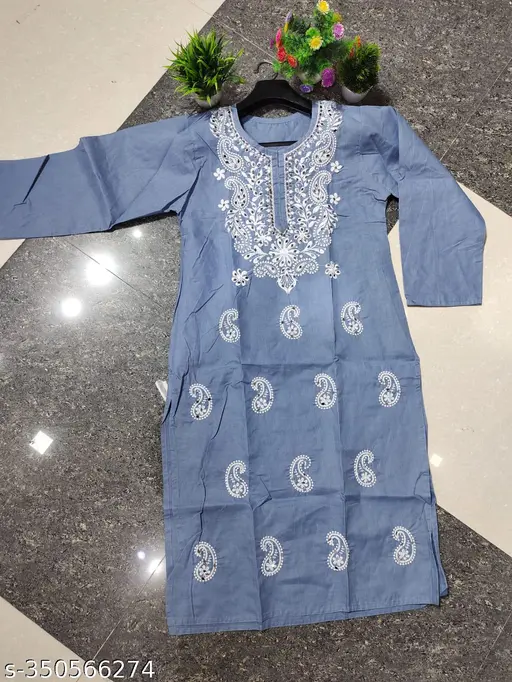 Fabric : Cotton Sleeve Length : Three-Quarter Sleeves Pattern : Chikankari Combo of : Single LUCKNOWI CHIKANKARI PURE AND PREMIUM COTTON EMBROIDERED MIRROR KURTI Country of Origin : India